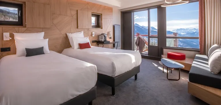 After a day of exploring the extensive Paradiski Ski Area, make the most of the wellness area included for hotel guests. Have a dip in the indoor pool, unwind in the sauna or soothe any aches in the outdoor jacuzzi with mountain views. There is also a lovely outdoor terrace facing the mountains, it is a great spot to soak up some winter sun. If you want to stay active, even off the slopes, there is also a fitness room with a range of equipment. For a little extra treat, pamper yourself with a treatment or massage with the expert masseuses and osteopaths (pay locally) and then take a moment to revitalise in the rest room with an herbal tea.